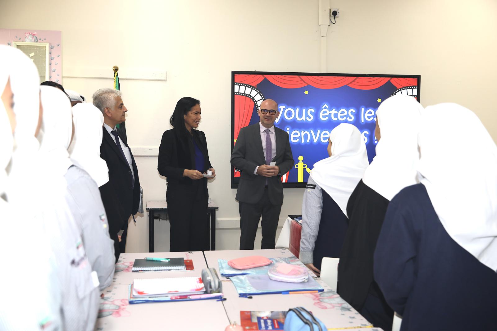 أقامت ثانوية عمرة بنت رواحة للبنات بمنطقة الجهراء التعليمية فعالية تربوية مميزة، وذلك بحضور السفير الفرنسي في دولة الكويت أوليفييه غوفان ، حيث أقام قسم اللغة الفرنسية درساً نموذجياً بعنوان «Une soirée – Compréhension orale». وجاءت هذه الفعالية برعاية الوكيل المساعد للشؤون التعليمية أ. حمد الحمد، وبحضور عدد من القيادات التربوية، تعزيزاً لدور اللغة الفرنسية في المناهج التعليمية وتطوير مهارات الطالبات في الفهم السمعي …وأعرب السفير الفرنسي في دولة الكويت أوليفييه غوفان عن سعادته بزيارته لثانوية عمرة بنت رواحة ومشاركته في حصة للفهم السمعي، مؤكداً أهمية تعليم اللغة الفرنسية ودورها في تعزيز الحوار والانفتاح الثقافي أمام الشباب..ووجّه السفير شكره لإدارة المدرسة والهيئة التعليمية على دعمهم المتواصل، كما أشاد بجهود وزارة التربية في تطوير تدريس اللغة الفرنسية من خلال محتواهم الإبداعي.