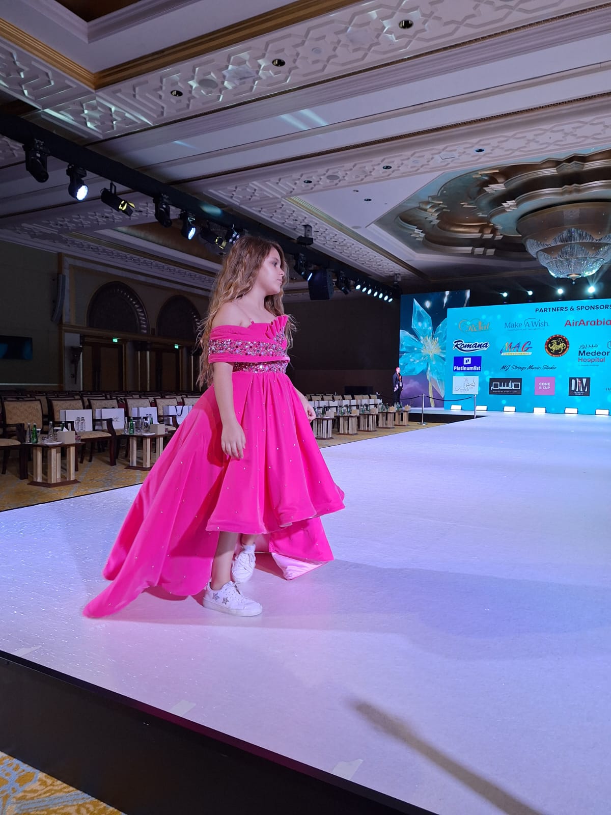 وأكدت أن عروض أسبوع الموضة شارك فيها 85 طفلا يمثلون عددا كبيرا من دول العالم من مختلف المراحل السنية حيث تراوحت أعمارهم بين 4 سنوات و16 عاما وجميعهم تألقوا على مسرح العرض وكانوا نجوما متميزين وسفراء لامعين لبلدانهم..وقالت منى المنصوري أن الإنسان يوجد في الحياة من أجل رسالة وهدف ويجب أن يكون مؤثرا ومتفاعلا مع كل ما يدور حوله على مستوى وطنه الأم ومحيطه الإقليمي والمستوى العالم وتكون كل أفكاره انعكاس للقضايا المهمة المطروحة على الساحة وخصوصا القضايا الإنسانية وعليه أن يترجم أفكاره لأعمال يستفيد منها المجتمع والعالم .